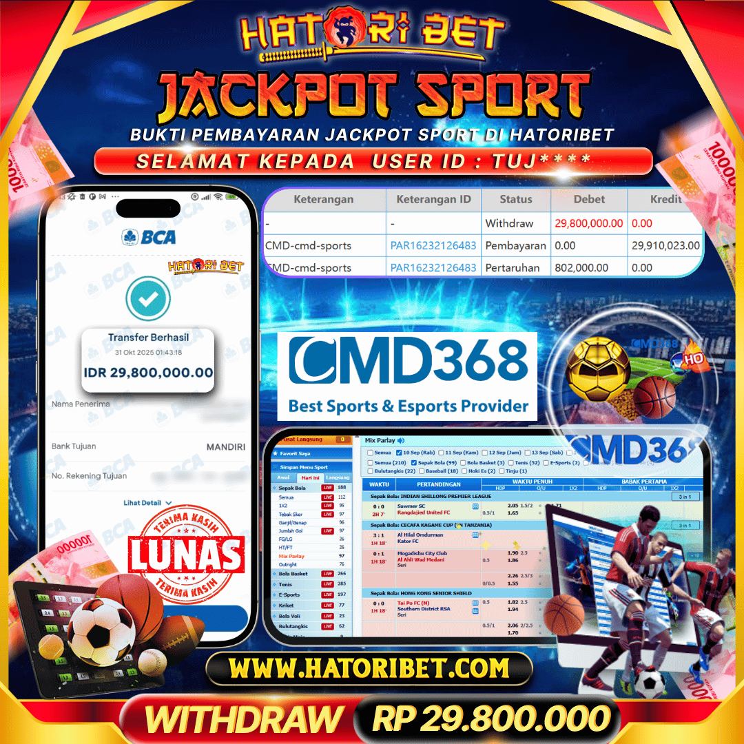 HATORIBET JACKPOT SPORT CMD368 RP 29,800,000 ,- LUNAS