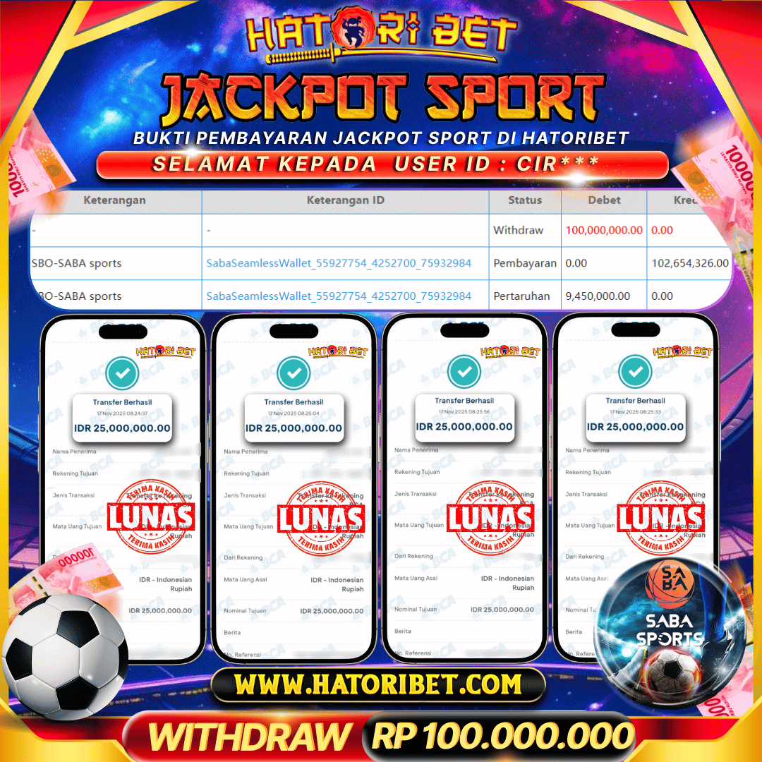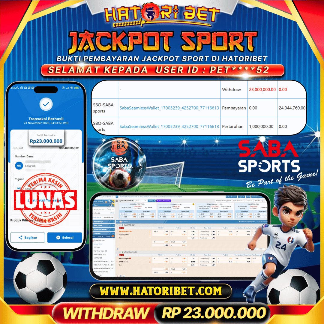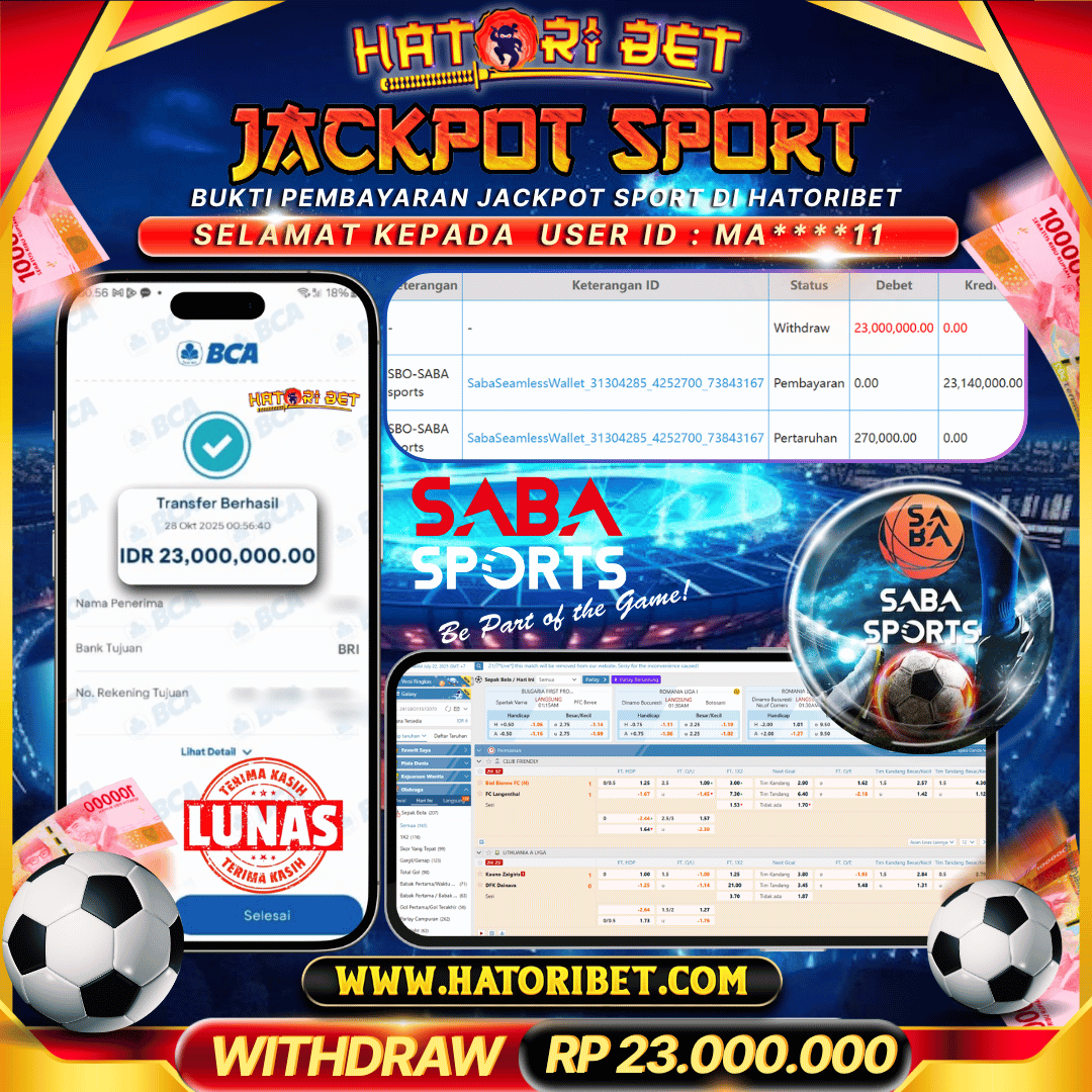 HATORIBET JACKPOT SPORT SABA RP 23,000,000 ,- LUNAS