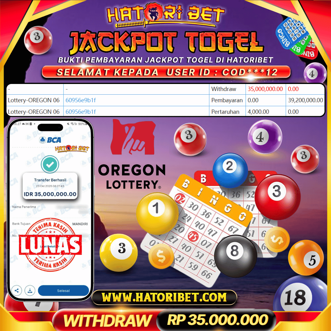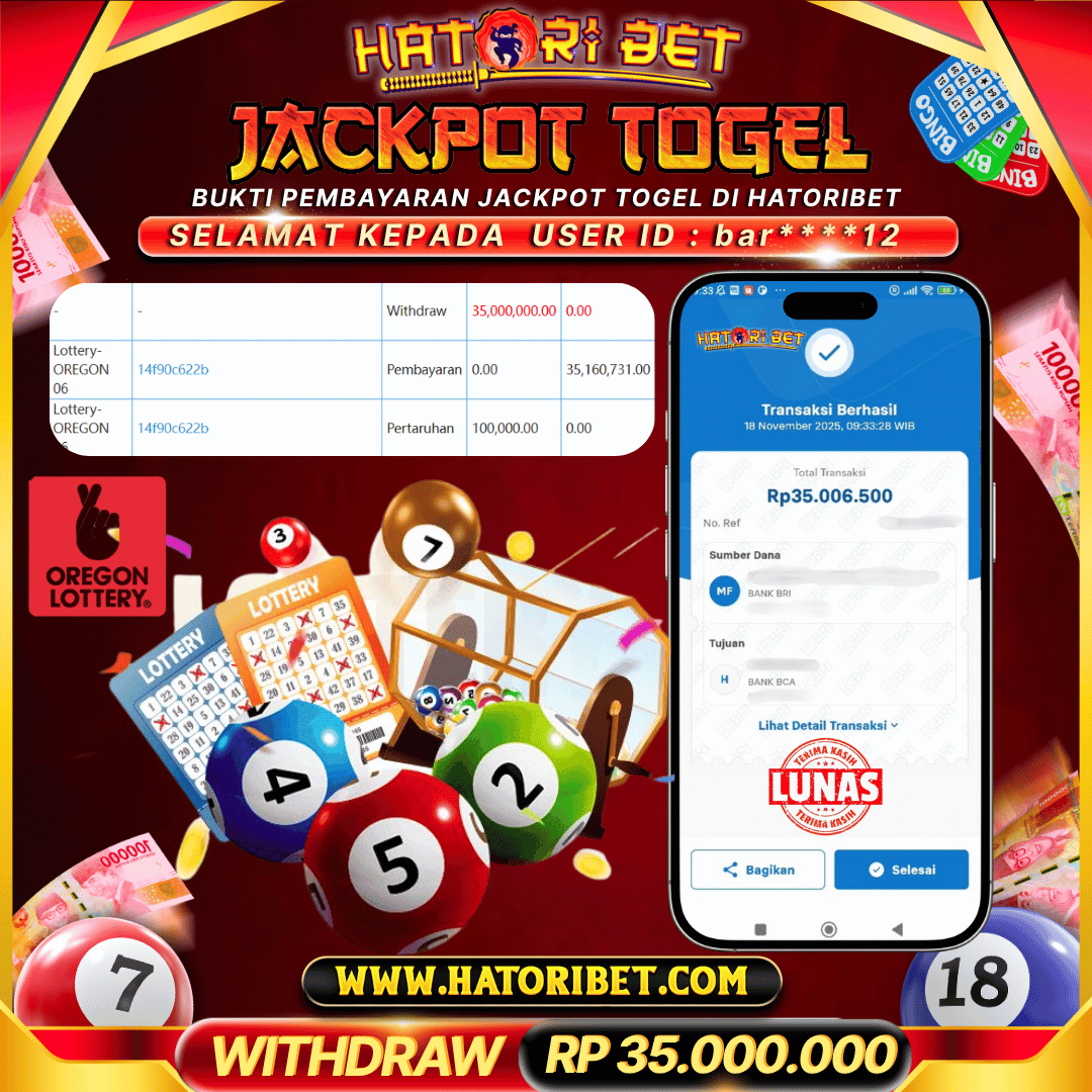 HATORIBET JACKPOT TOGEL OREGON RP 35,000,000 ,- LUNAS