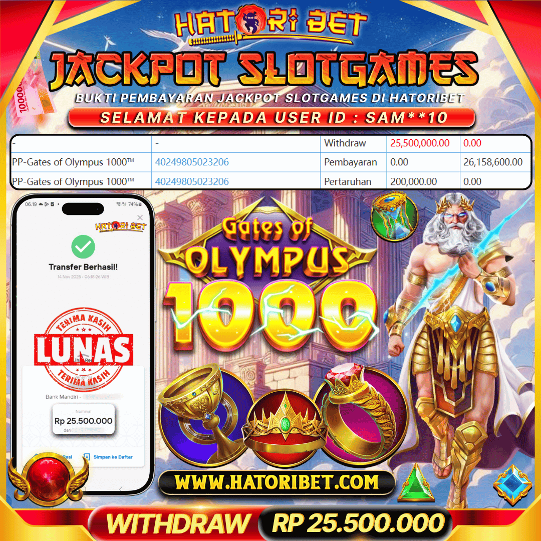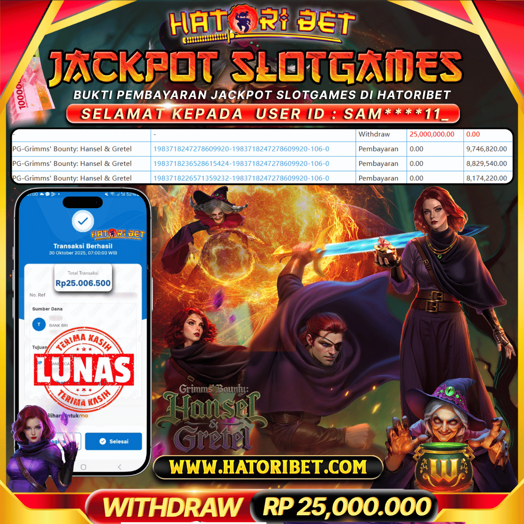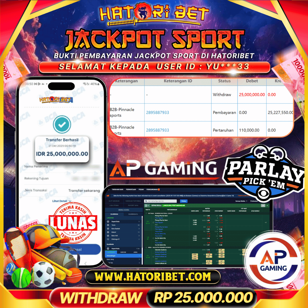 HATORIBET JACKPOT SPORT AP GAMING RP 25,000,000 ,- LUNAS