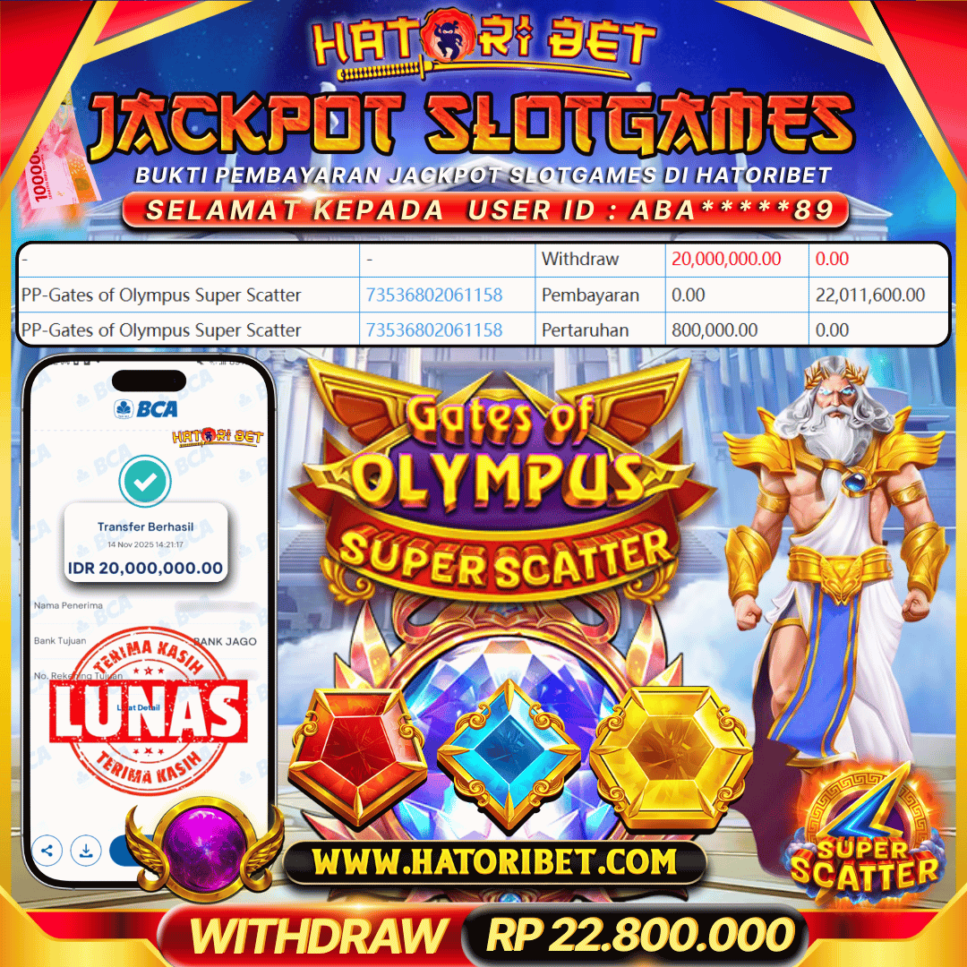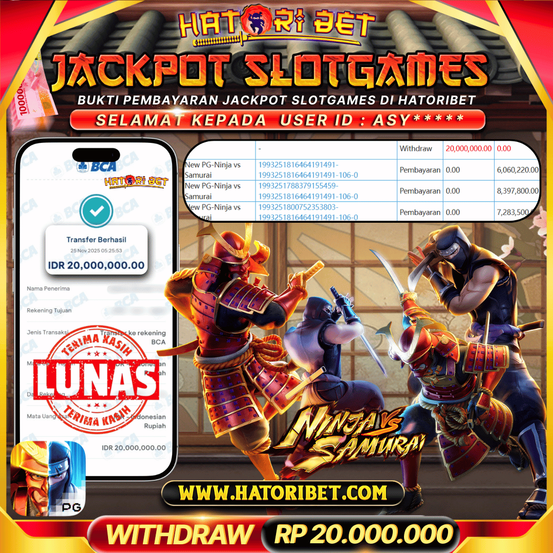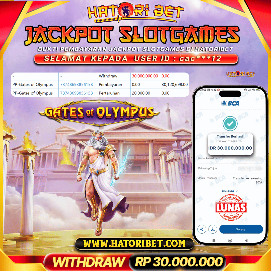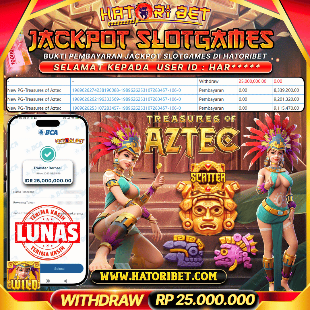 HATORIBET JACKPOT SPORT AP GAMING RP 25,000,000 ,- LUNAS