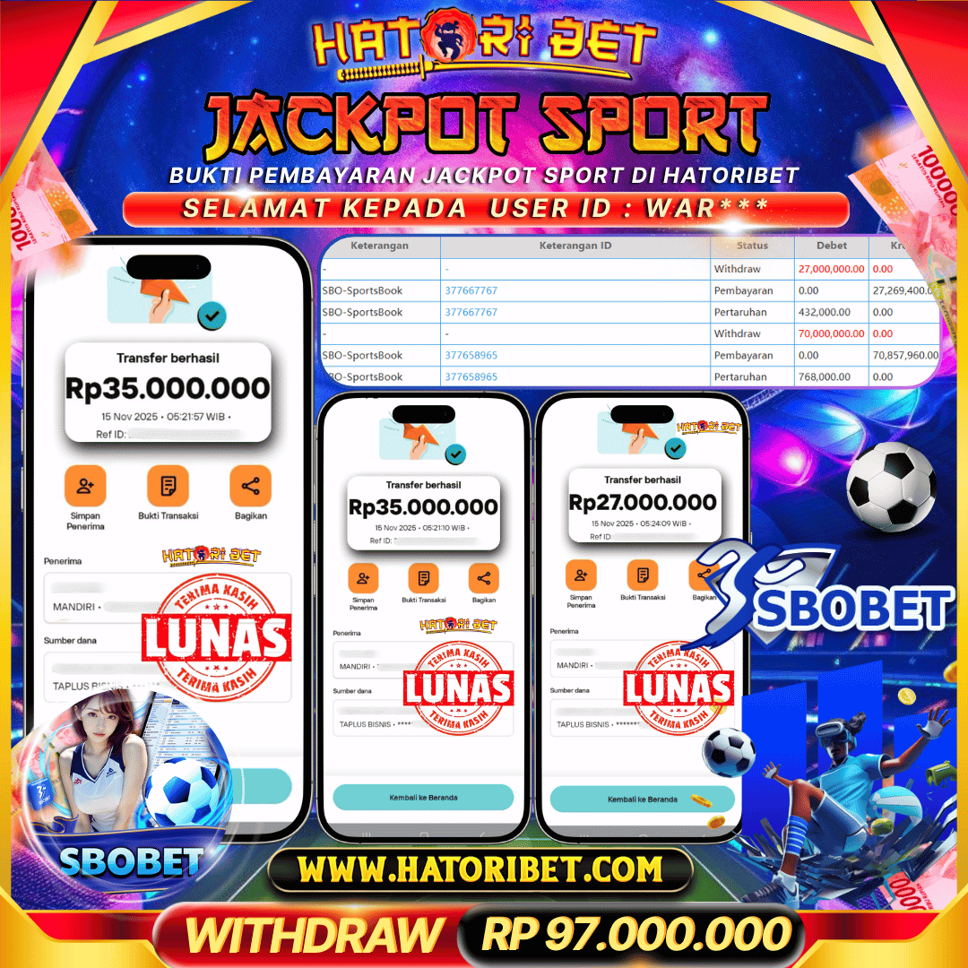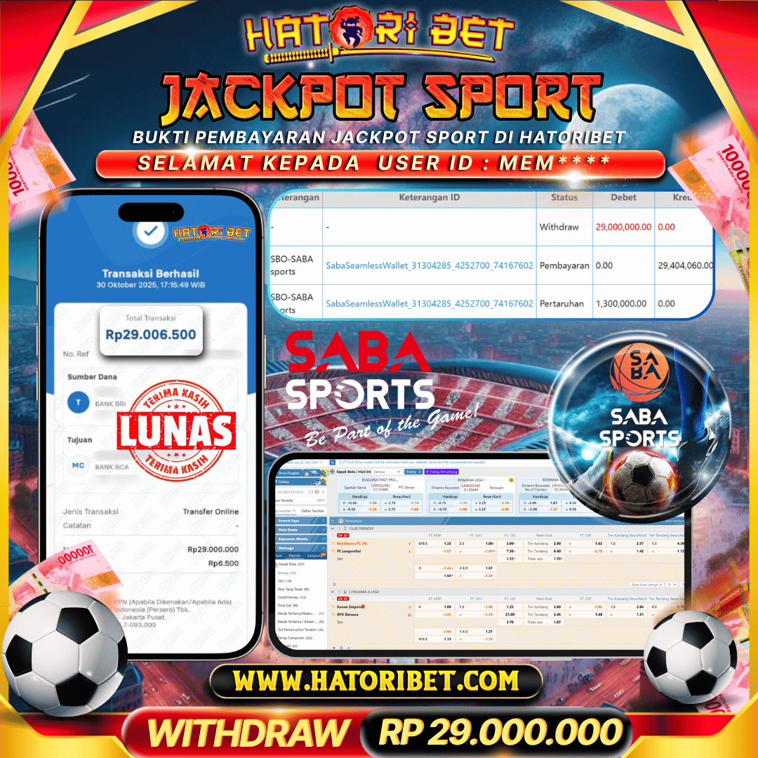 HATORIBET JACKPOT SPORT SABA RP 29,000,000 ,- LUNAS