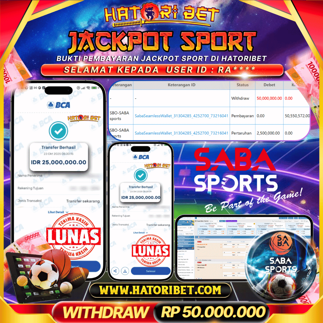 HATORIBET JACKPOT SPORT SABA RP 50,000,000 ,- LUNAS