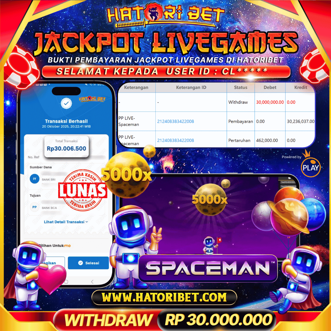 HATORIBET JACKPOT LIVEGAMES PP LIVE-SPACEMAN RP 30,000,000 ,- LUNAS
