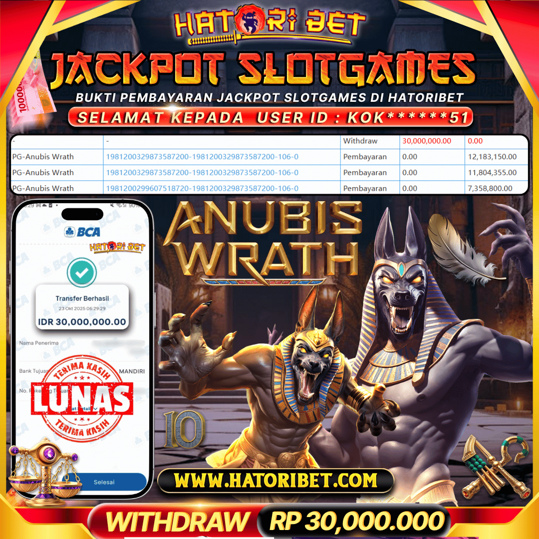 HATORIBET JACKPOT SLOTGAMES PG-ANUBIS WRATH 30,000,000 ,- LUNAS