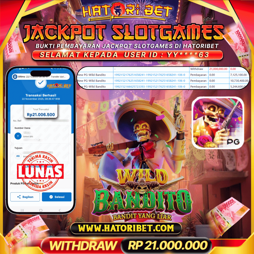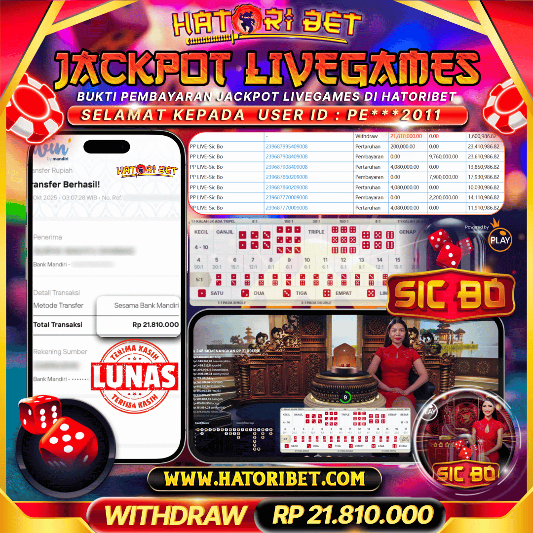 HATORIBET JACKPOT LIVEGAMES PP LIVE-SIC BO RP 21,810,000 ,- LUNAS