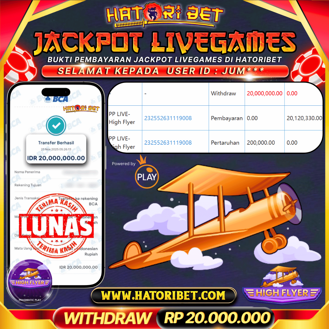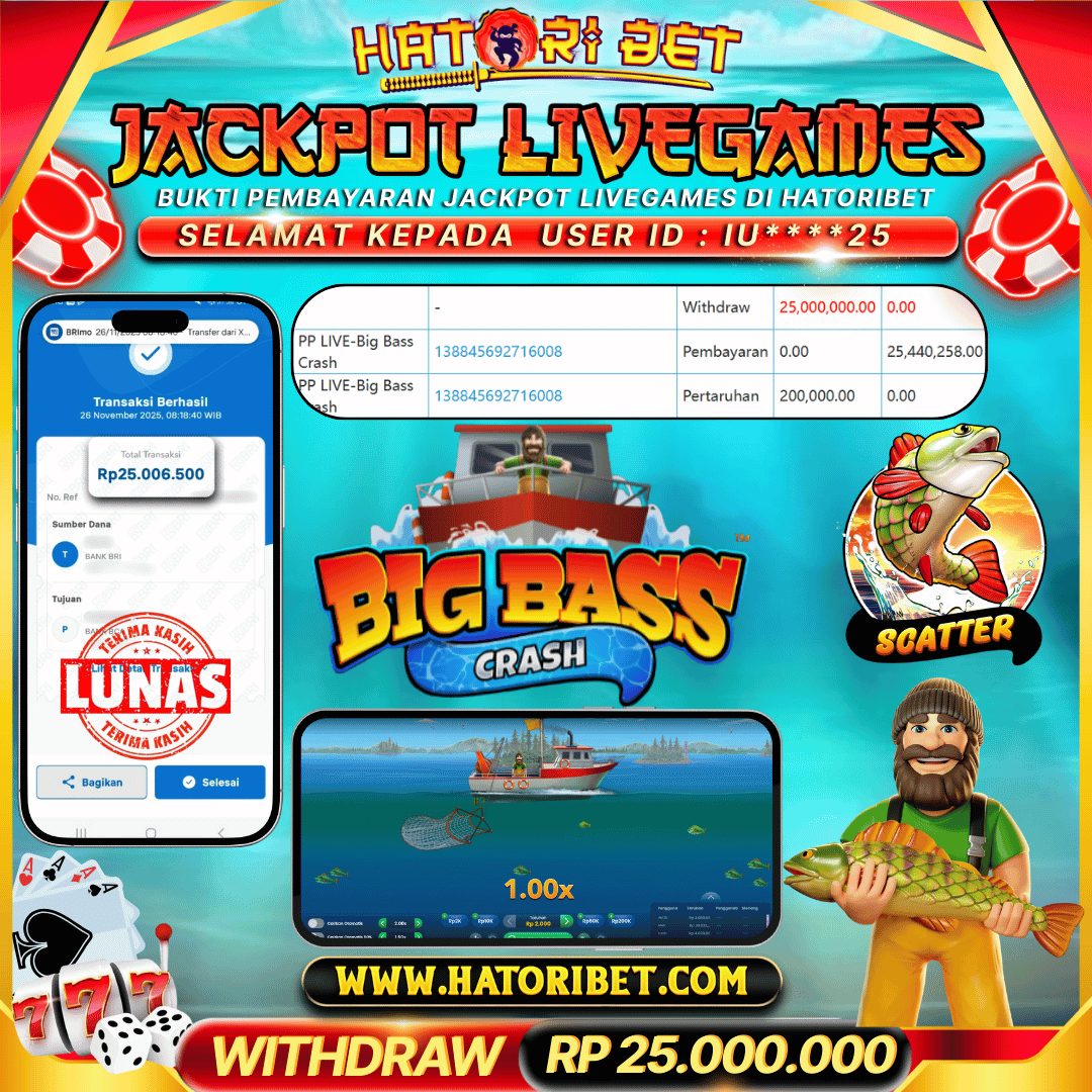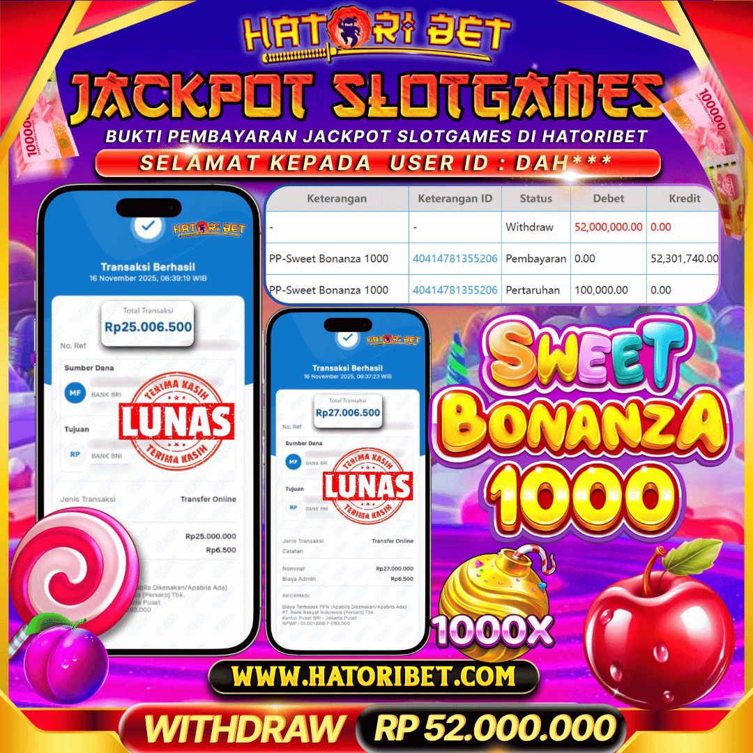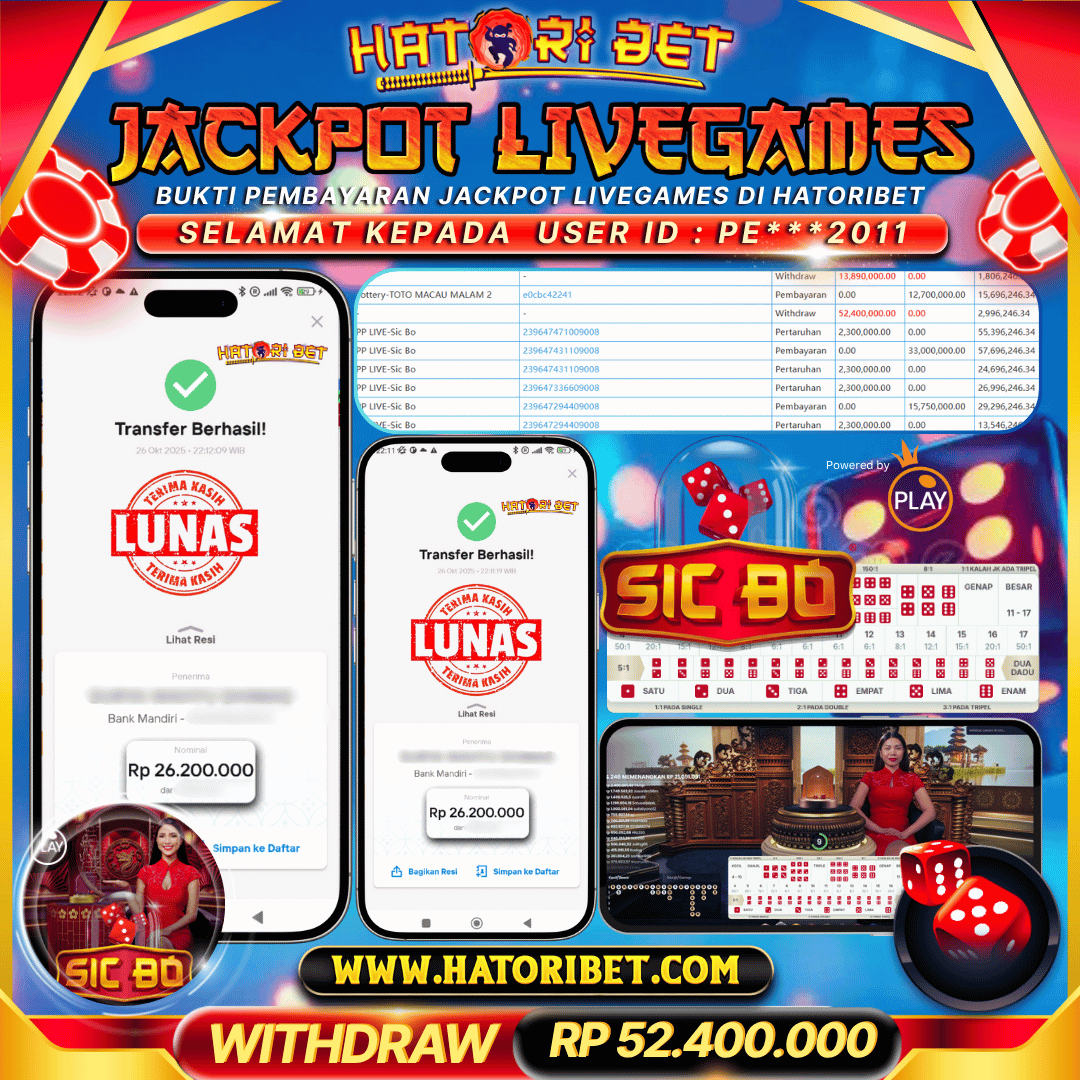 HATORIBET JACKPOT LIVEGAMES PP LIVE-SIC BO RP 52,400,000 ,- LUNAS
