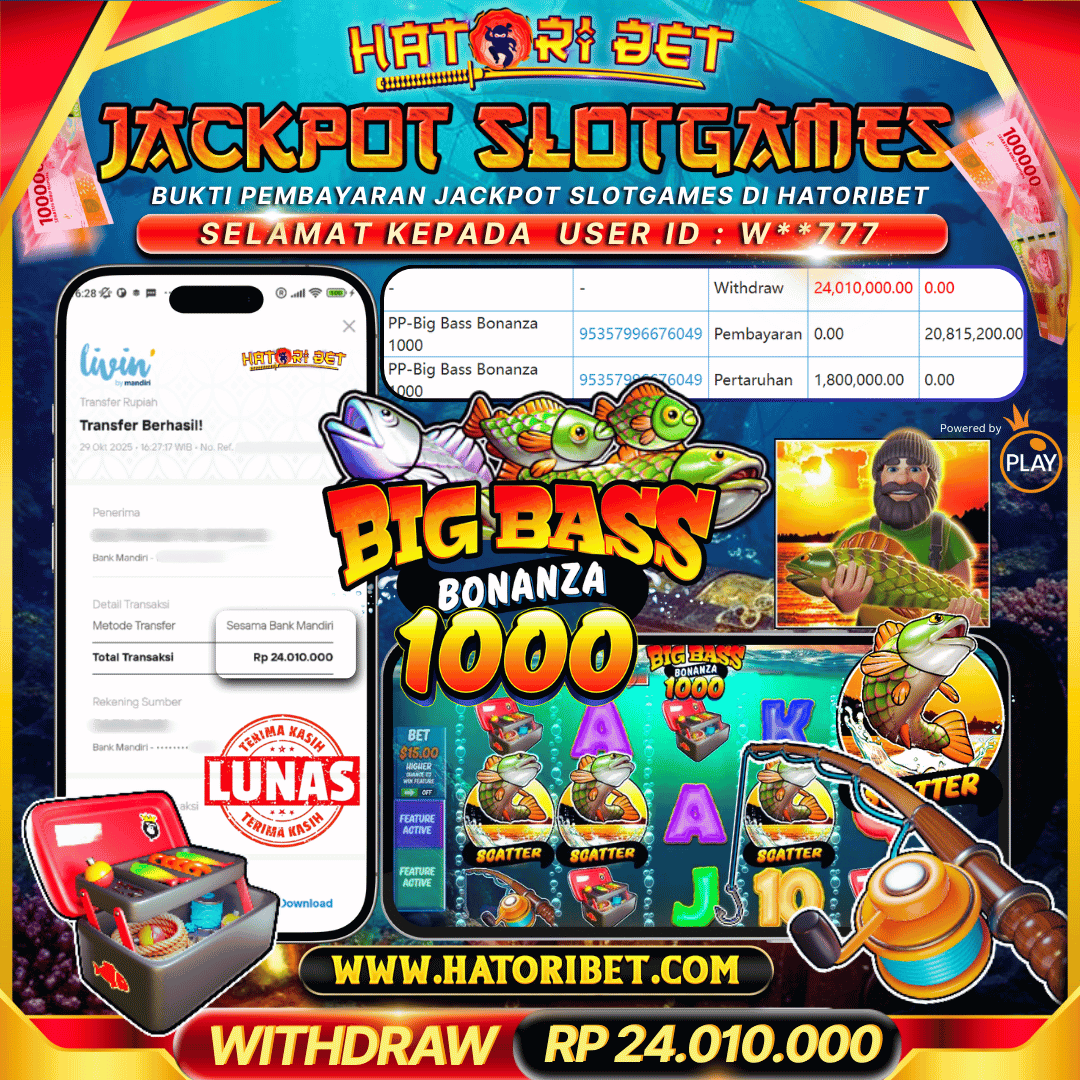 HATORIBET JACKPOT SLOTGAMES PP-BIG BASS BONANZA 1000 24,010,000 ,- LUNAS