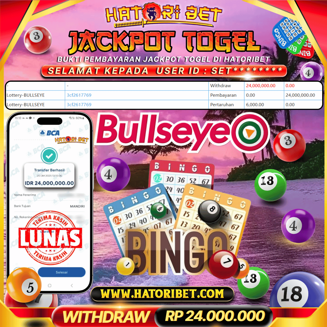 HATORIBET JACKPOT TOGEL BULLSEYE RP 24,000,000 ,- LUNAS