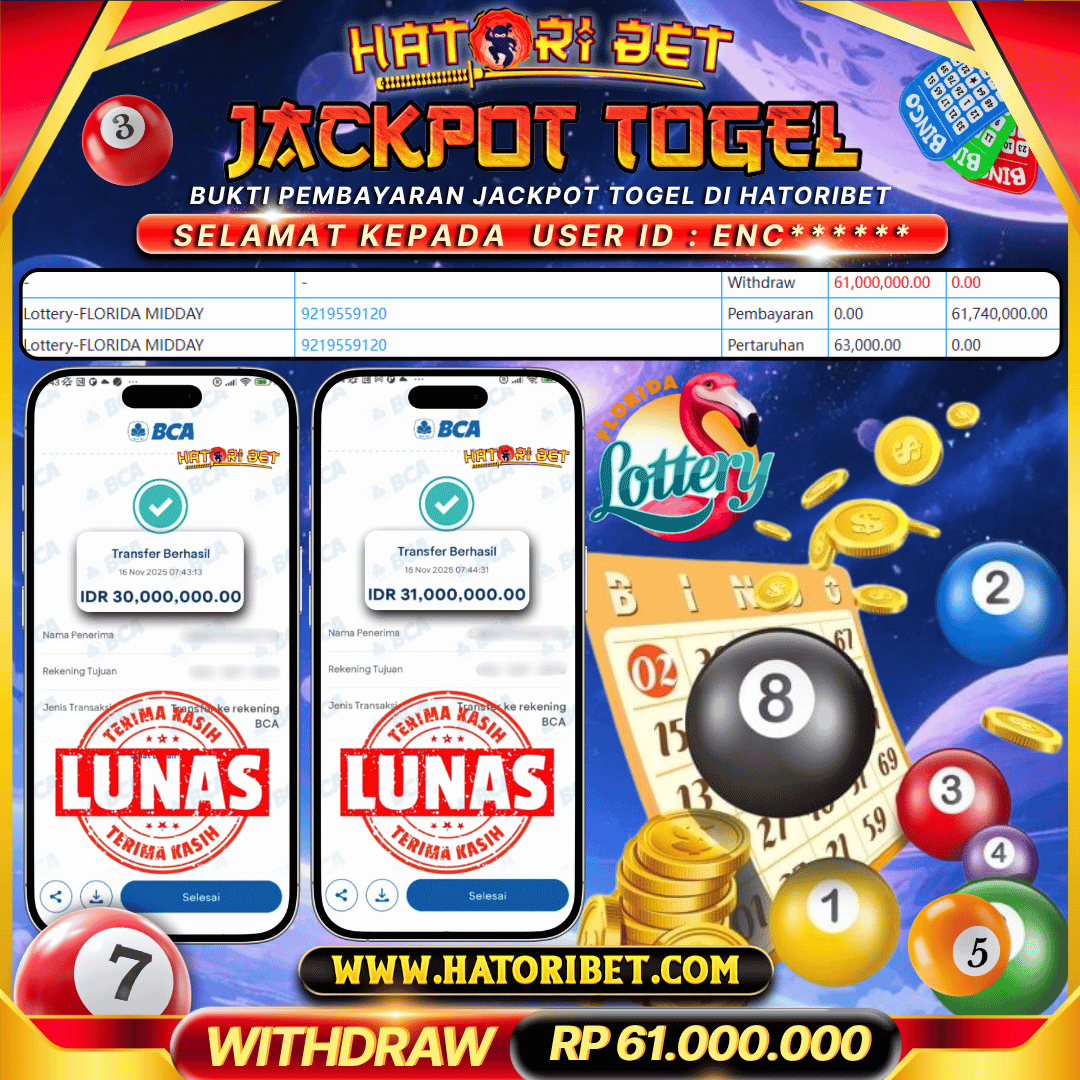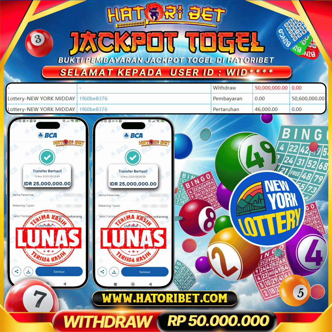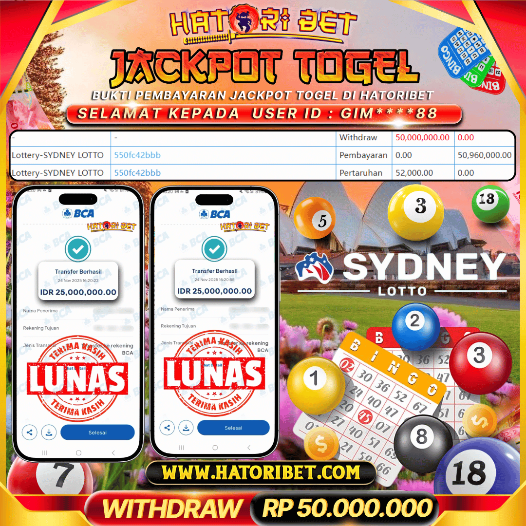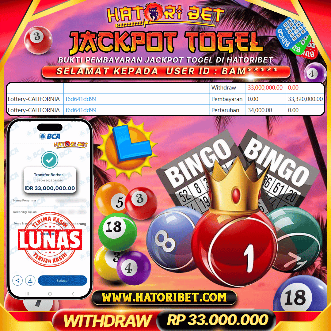 HATORIBET JACKPOT TOGEL CALIFORNIA RP 33,000,000 ,- LUNAS