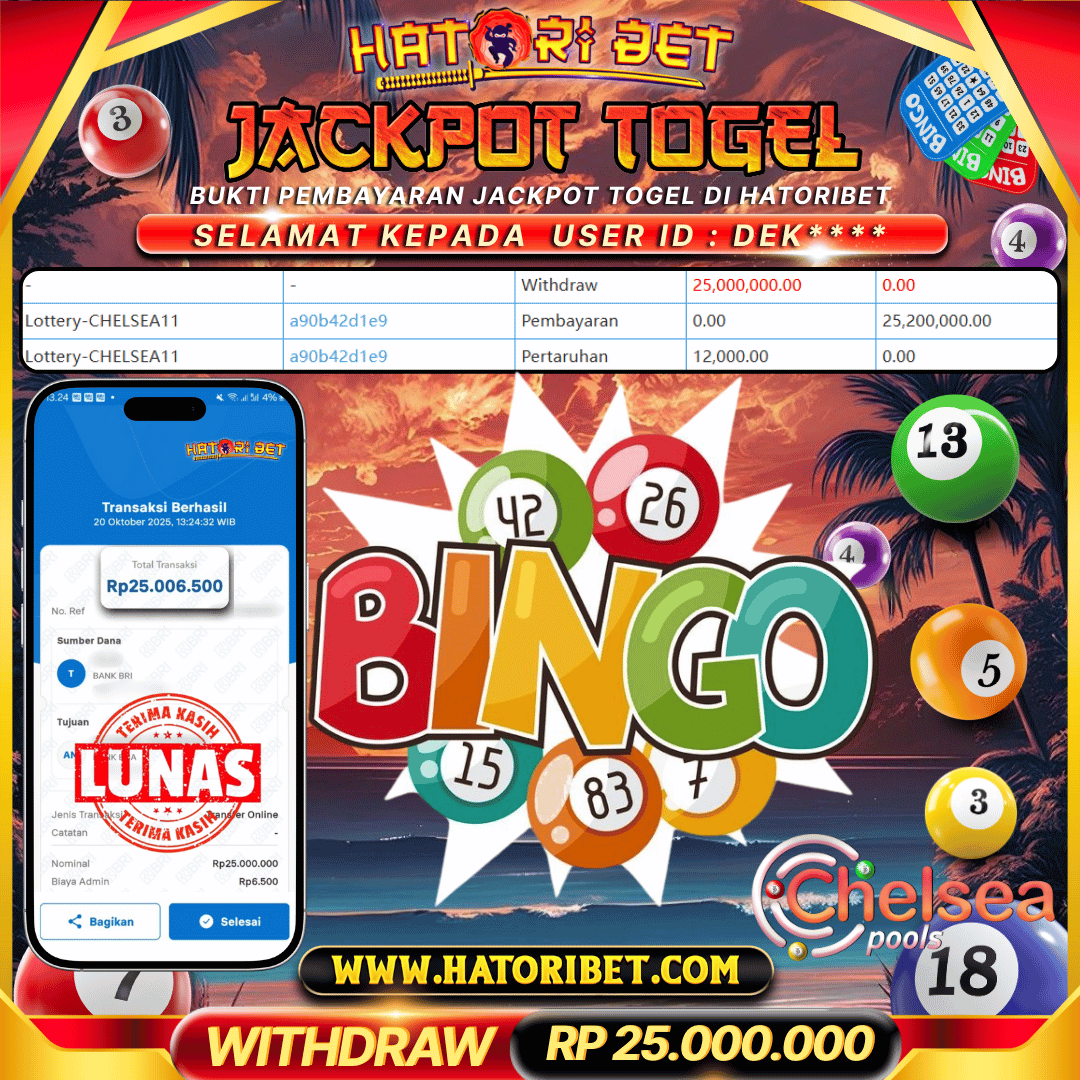 HATORIBET JACKPOT TOGEL CHELSEA RP 25,000,000 ,- LUNAS