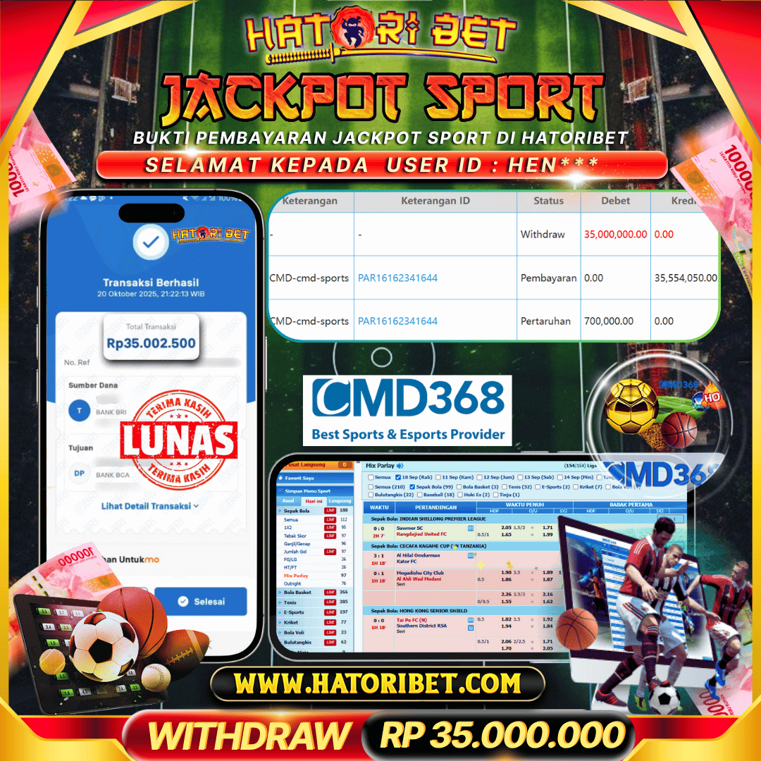 HATORIBET JACKPOT SPORT CMD368 RP 35,000,000 ,- LUNAS