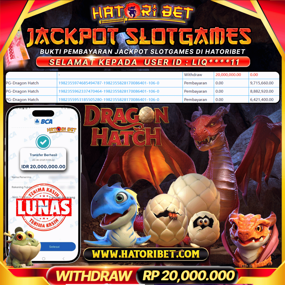 HATORIBET JACKPOT SLOTGAMES PG-DRAGON HATCH 20,000,000 ,- LUNAS