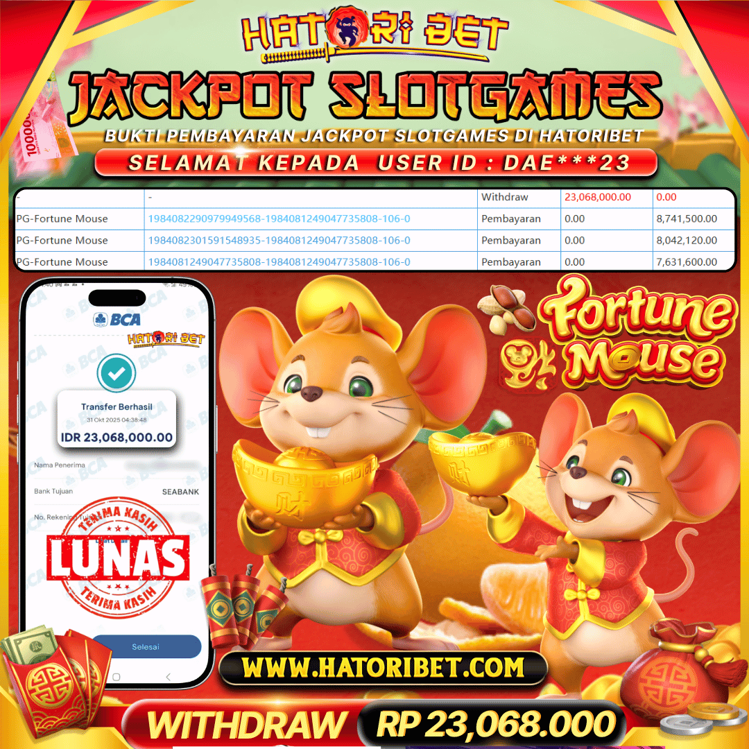 HATORIBET JACKPOT SLOTGAMES PG-FORTUNE MOUSE 23,068,000 ,- LUNAS