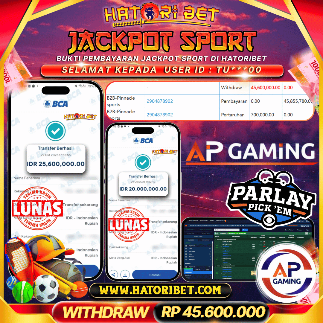 HATORIBET JACKPOT SPORT AP GAMING RP 45,600,000 ,- LUNAS