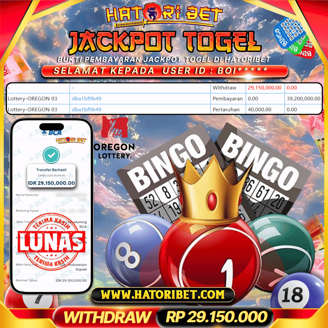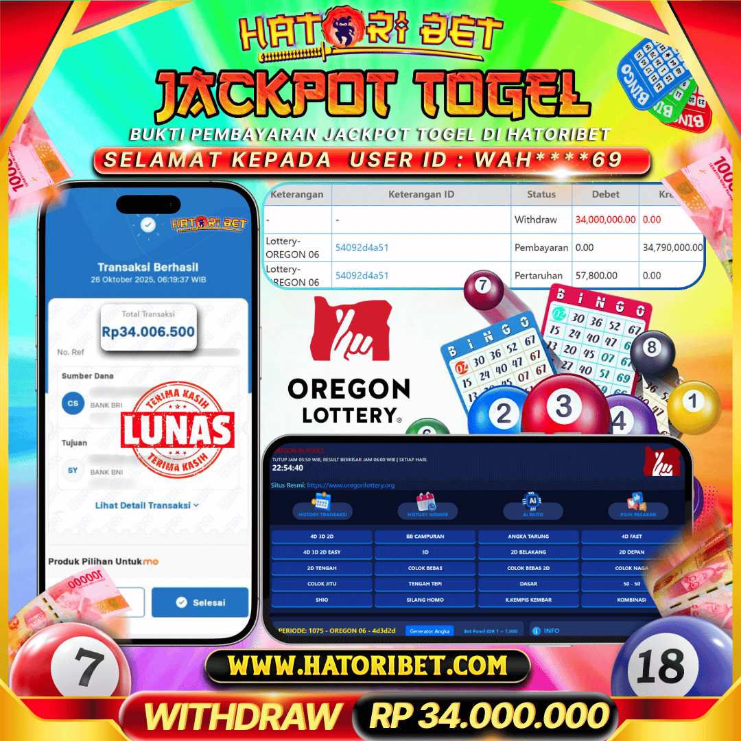 HATORIBET JACKPOT TOGEL OREGON 06 RP 34,000,000 ,- LUNAS