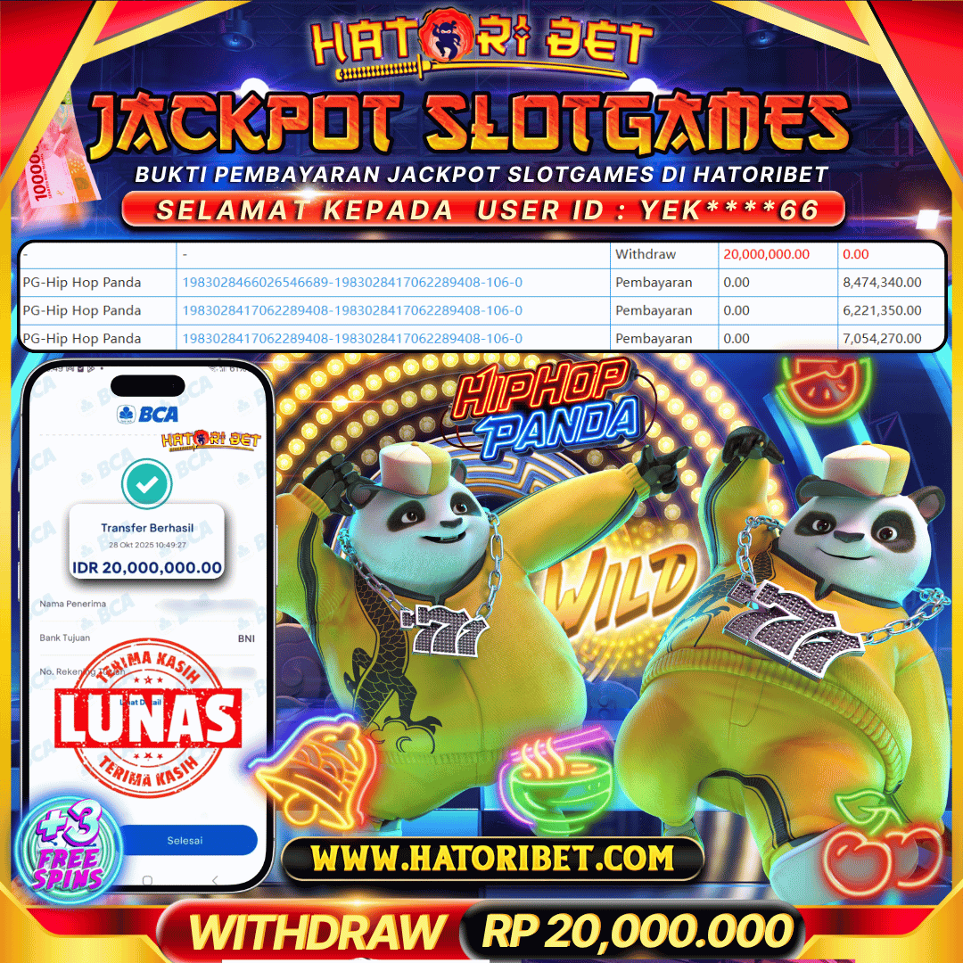 HATORIBET JACKPOT SLOTGAMES PG-HIP HOP PANDA 20,000,000 ,- LUNAS