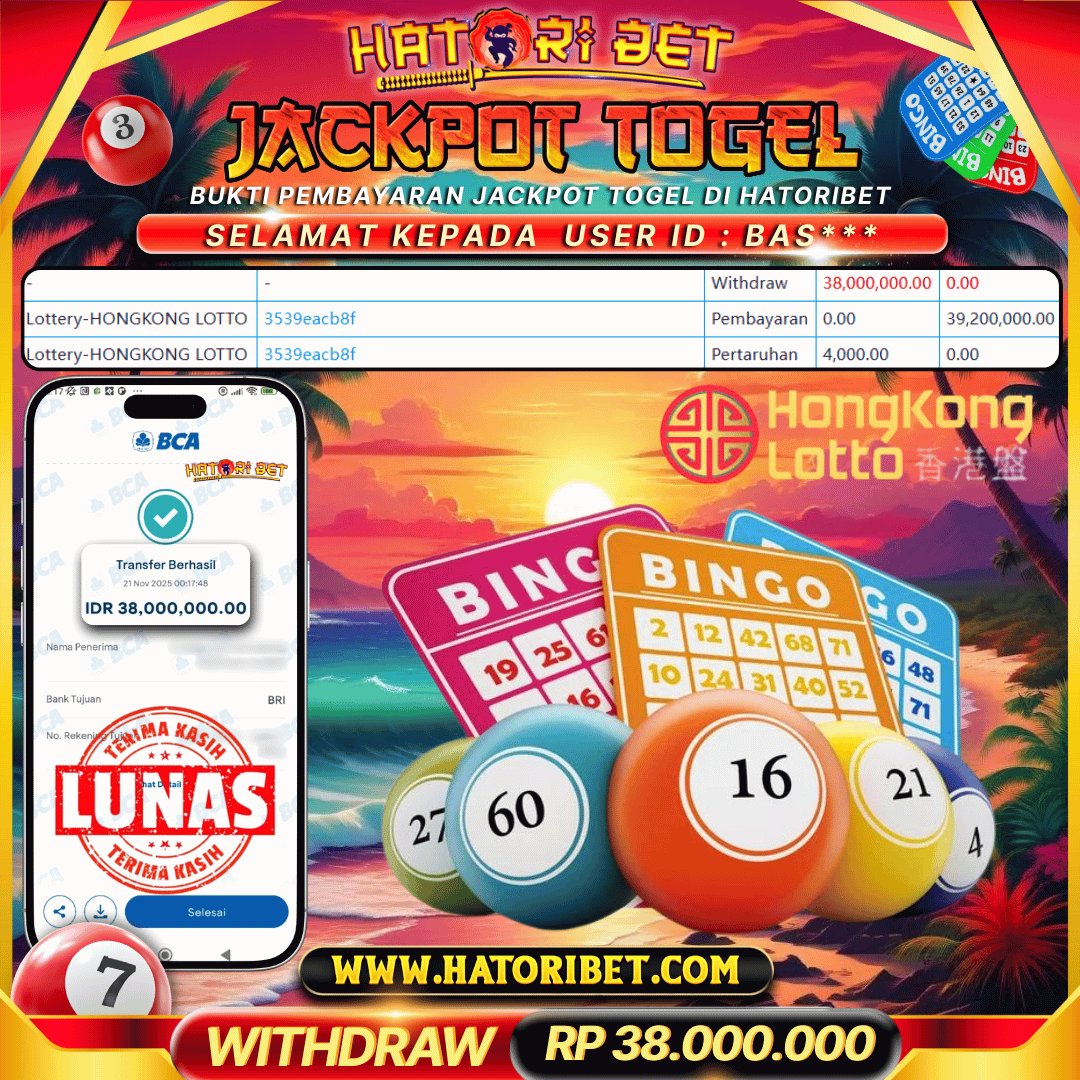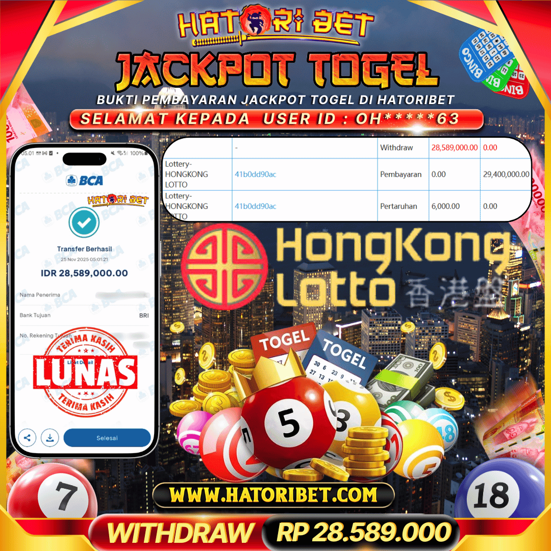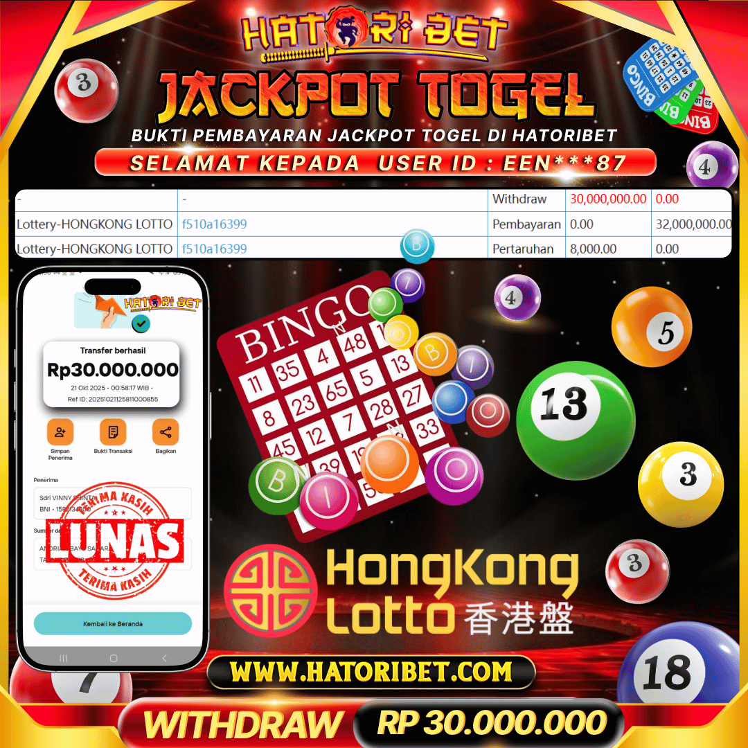 HATORIBET JACKPOT TOGEL HONGKONG RP 30,000,000 ,- LUNAS