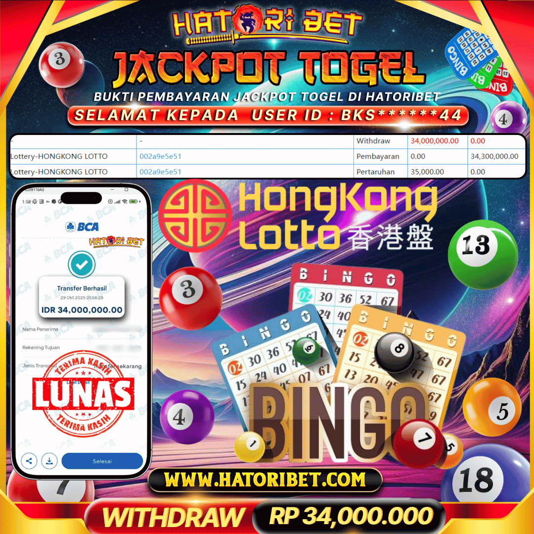 HATORIBET JACKPOT TOGEL HONGKONG RP 34,000,000 ,- LUNAS