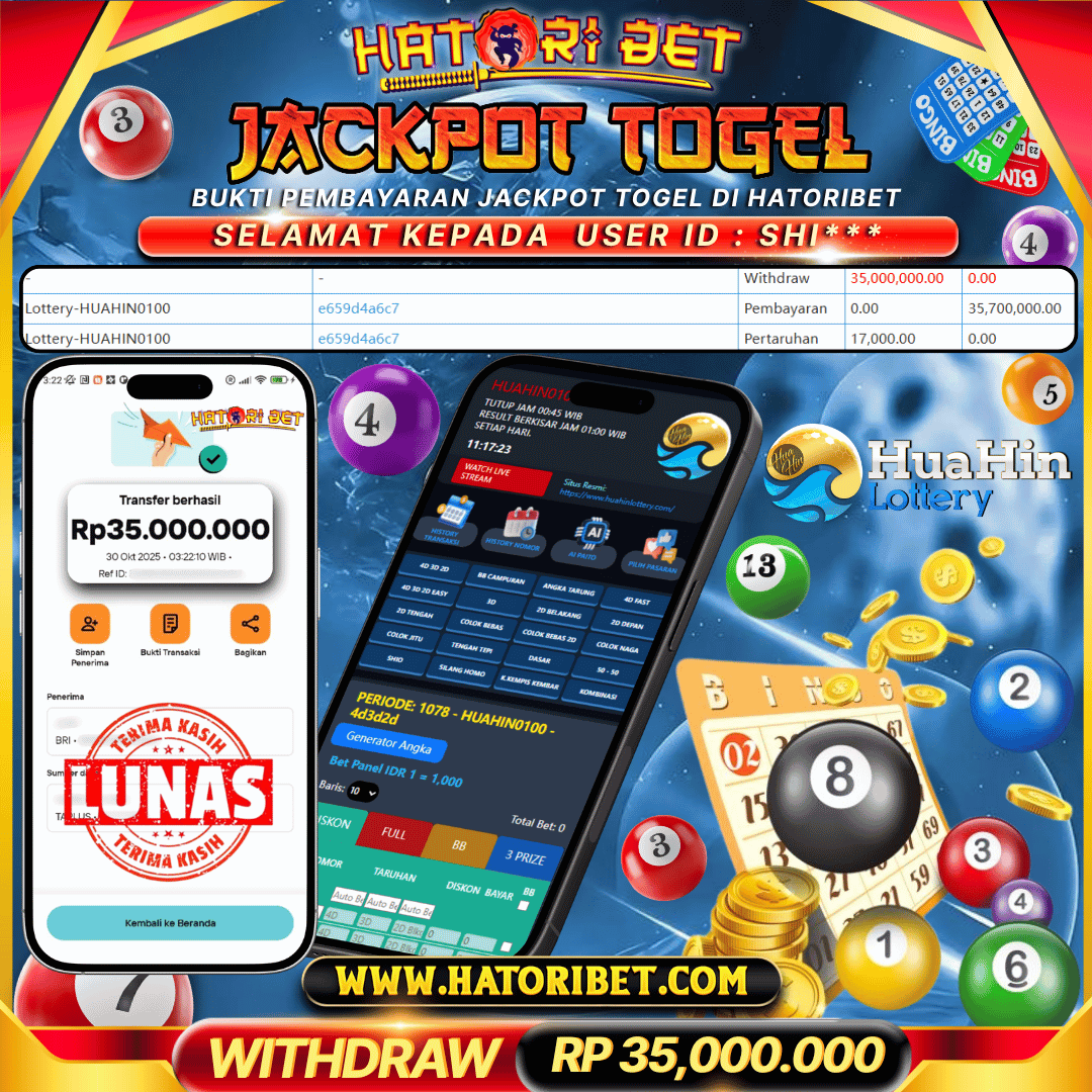HATORIBET JACKPOT TOGEL HUAHIN RP 35,000,000 ,- LUNAS