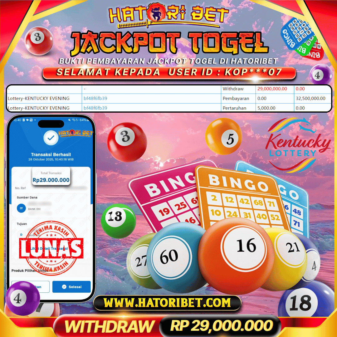 HATORIBET JACKPOT TOGEL KENTUCKY RP 29,000,000 ,- LUNAS