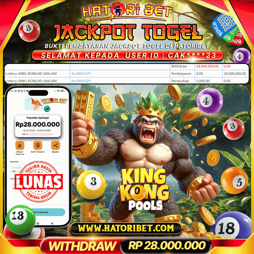 HATORIBET JACKPOT TOGEL KING KONG 4D RP 28,000,000 ,- LUNAS