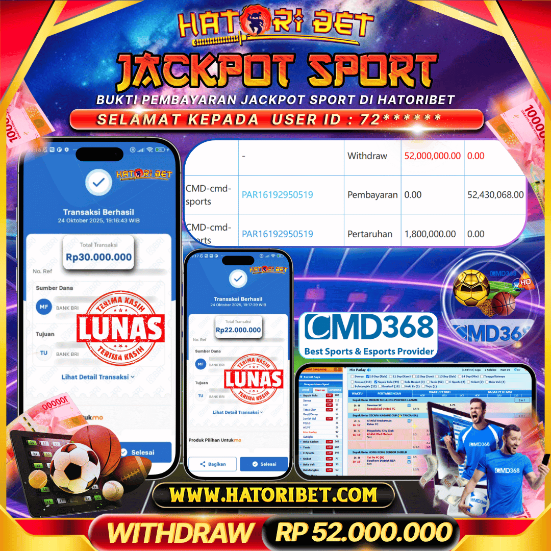 HATORIBET JACKPOT SPORT CMD368 RP 52,000,000 ,- LUNAS