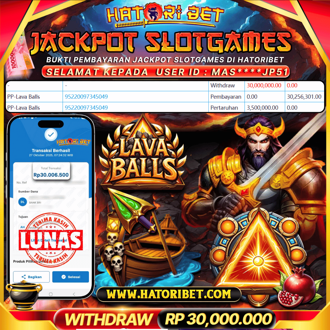 HATORIBET JACKPOT SLOTGAMES PP-LAVA BALLS 30,000,000 ,- LUNAS