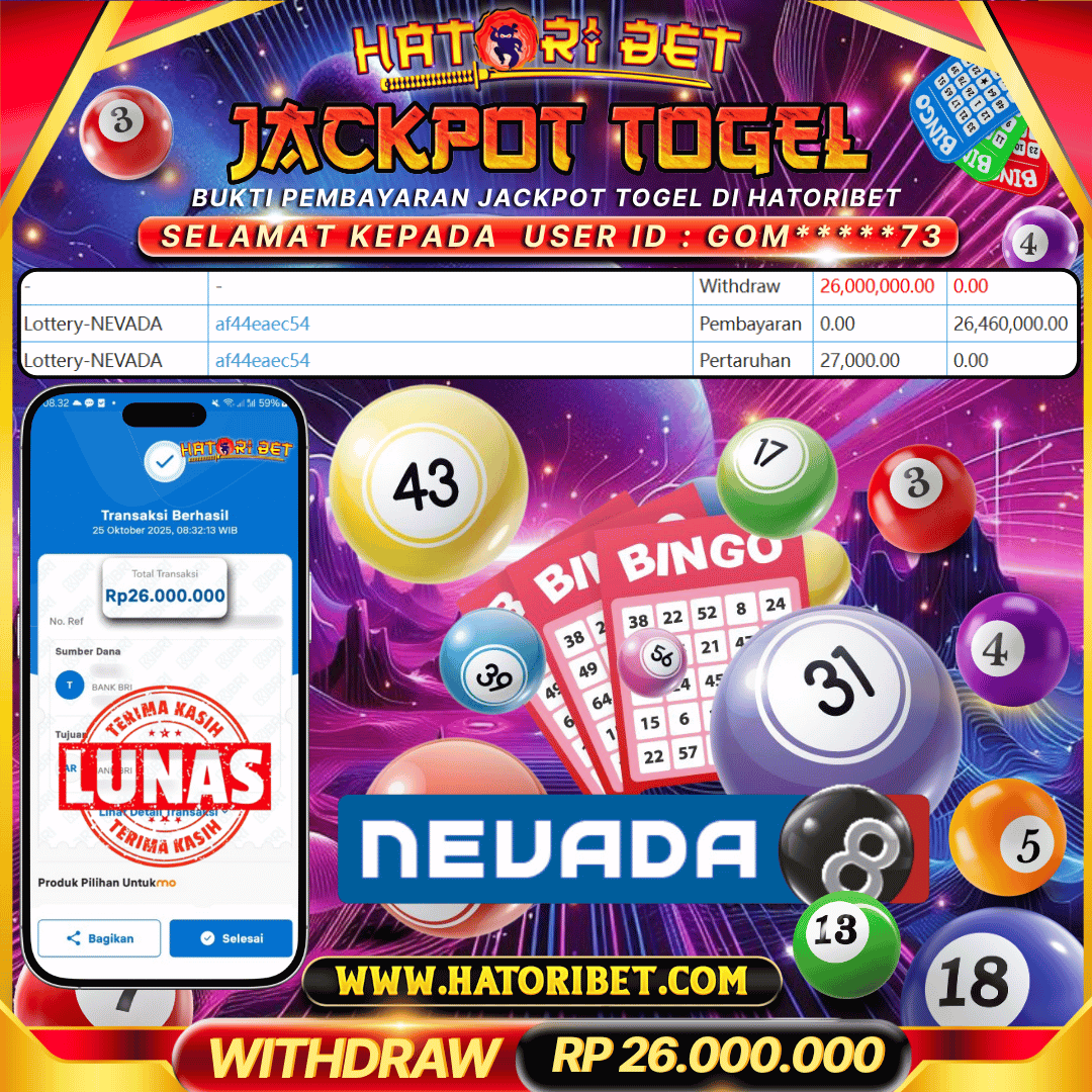 HATORIBET JACKPOT TOGEL NEVADA RP 26,000,000 ,- LUNAS