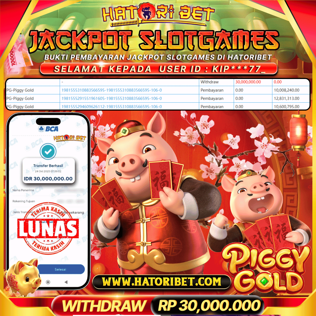 HATORIBET JACKPOT SLOTGAMES PG-PIGGY GOLD 30,000,000 ,- LUNAS
