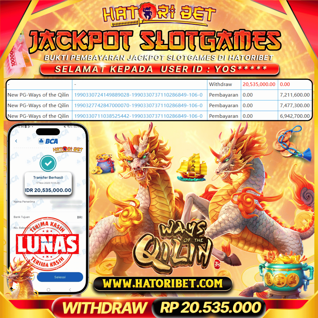Selamat kepada UserId : LIG****11 telah berhasil mendapatkan kemenangan besar pada permainan SLOTGAMES PG-DRAGON HATCH sebesar RP 20,000,000 , Setelah mengisi formulir withdraw dalam kurung waktu hanya 5 – 10 menit pihak HatoriBet sudah melakukan transfer kepada pemilik UserId dan dana sudah dapat di cairkan oleh pemenang. Bukti pembayaran yang kami berikan merupakan bukti pembayaran yang SAH / VALID yang langsung di dapatkan melaui tanda transfer transaksi dari Bank yang di tuju. Kami mengucapakan banyak Terima Kasih Kepada pemenang karena sudah mempercayakan kami sebagai Bandar terpercaya yang membayar semua kemenangan member hingga lunas. Masih ragu dengan HatoriBet? Di mana bandar slot dan togel online sekarang yang terpercaya seperti hatoribet ? Bandar yang mengirimkan kemenangan member tanpa bertele – tele. Jadi.... tidak perlu khawatir pada situs HATORIBET karena kemenangan berapapun akan dibayarkan hingga lunas kepada pemenang.