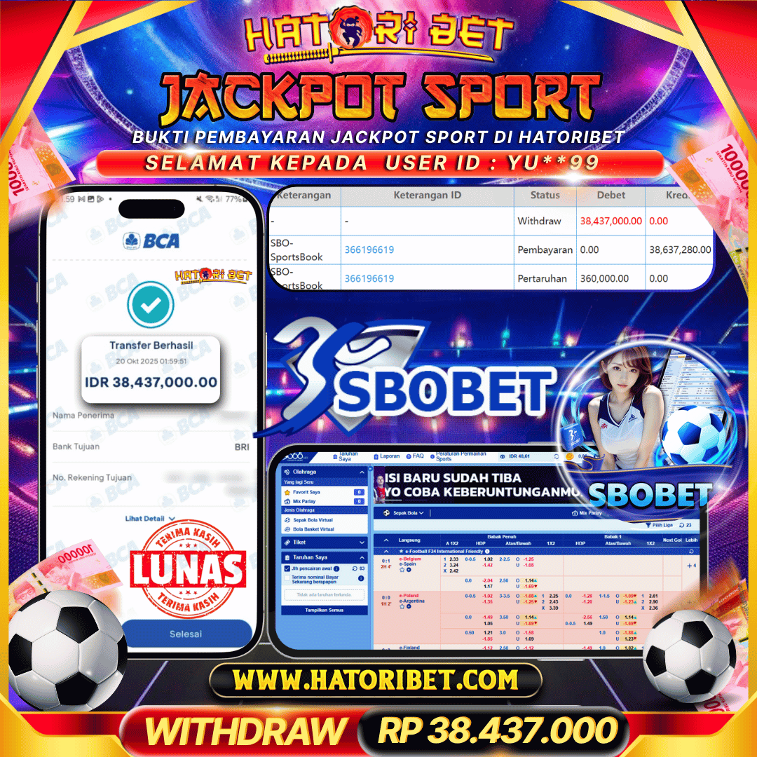 HATORIBET JACKPOT SPORT SBOBET RP 38,437,000 ,- LUNAS