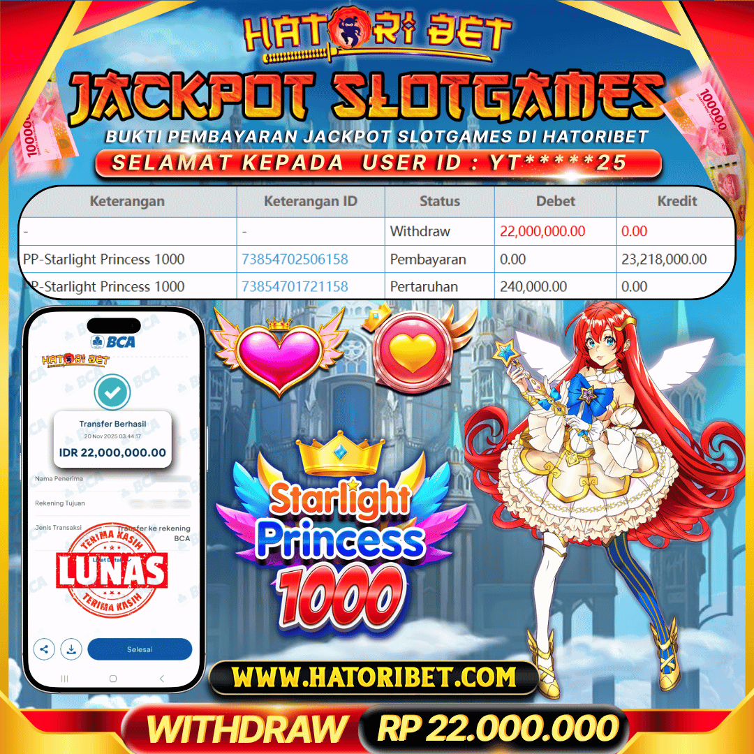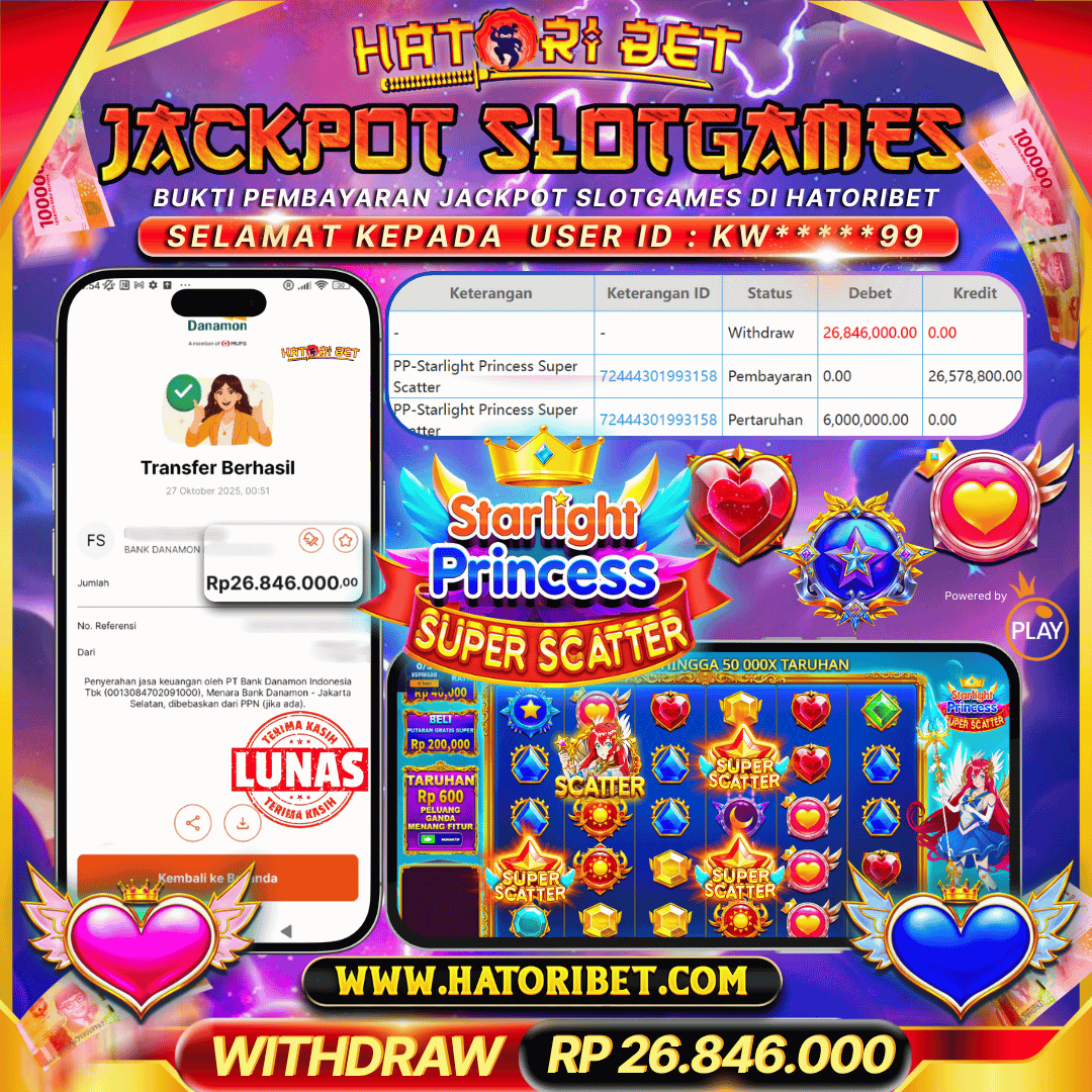 HATORIBET JACKPOT SLOTGAMES PP-STARLIGHT PRINCESS SUPER SCATTER 26,846,000 ,- LUNAS