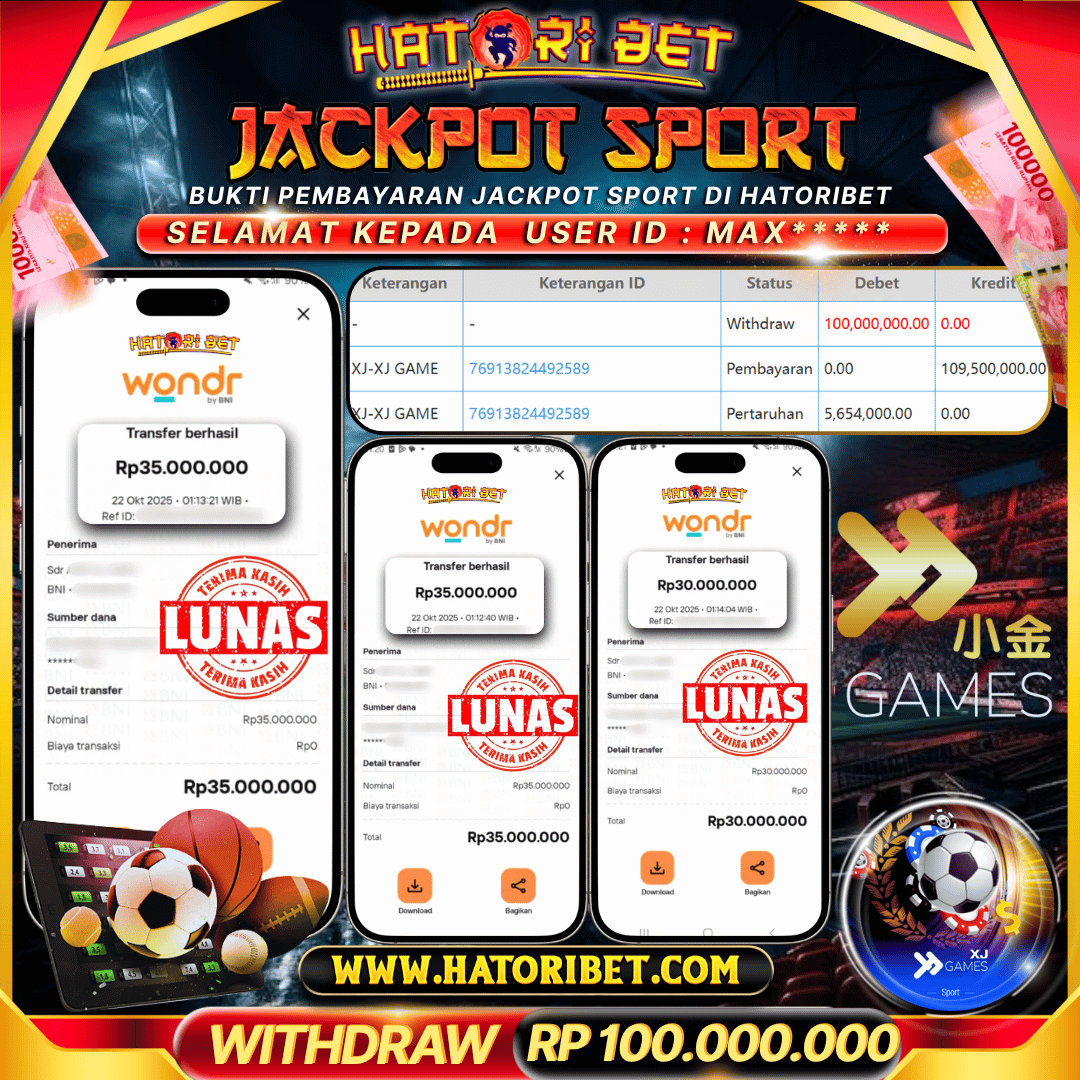 HATORIBET JACKPOT SPORT XJ GAMES RP 100,000,000 ,- LUNAS