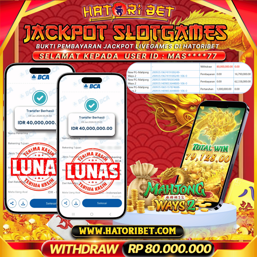 Selamat kepada UserId : MAS****77 telah berhasil mendapatkan kemenangan besar pada permainan SLOTGAMES PG-MAHJONG WAYS 2 RP 80,000,000 , Setelah mengisi formulir withdraw dalam kurung waktu hanya 5 – 10 menit pihak HatoriBet sudah melakukan transfer kepada pemilik UserId dan dana sudah dapat di cairkan oleh pemenang. Bukti pembayaran yang kami berikan merupakan bukti pembayaran yang SAH / VALID yang langsung di dapatkan melaui tanda transfer transaksi dari Bank yang di tuju. Kami mengucapakan banyak Terima Kasih Kepada pemenang karena sudah mempercayakan kami sebagai Bandar terpercaya yang membayar semua kemenangan member hingga lunas. Masih ragu dengan HatoriBet? Di mana bandar slot dan togel online sekarang yang terpercaya seperti hatoribet ? Bandar yang mengirimkan kemenangan member tanpa bertele – tele. Jadi.... tidak perlu khawatir pada situs HATORIBET karena kemenangan berapapun akan dibayarkan hingga lunas kepada pemenang.