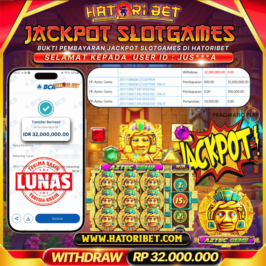 HATORIBET JACKPOT SLOTGAMES PP-AZTEC GEMS 32,000,000 ,- LUNAS