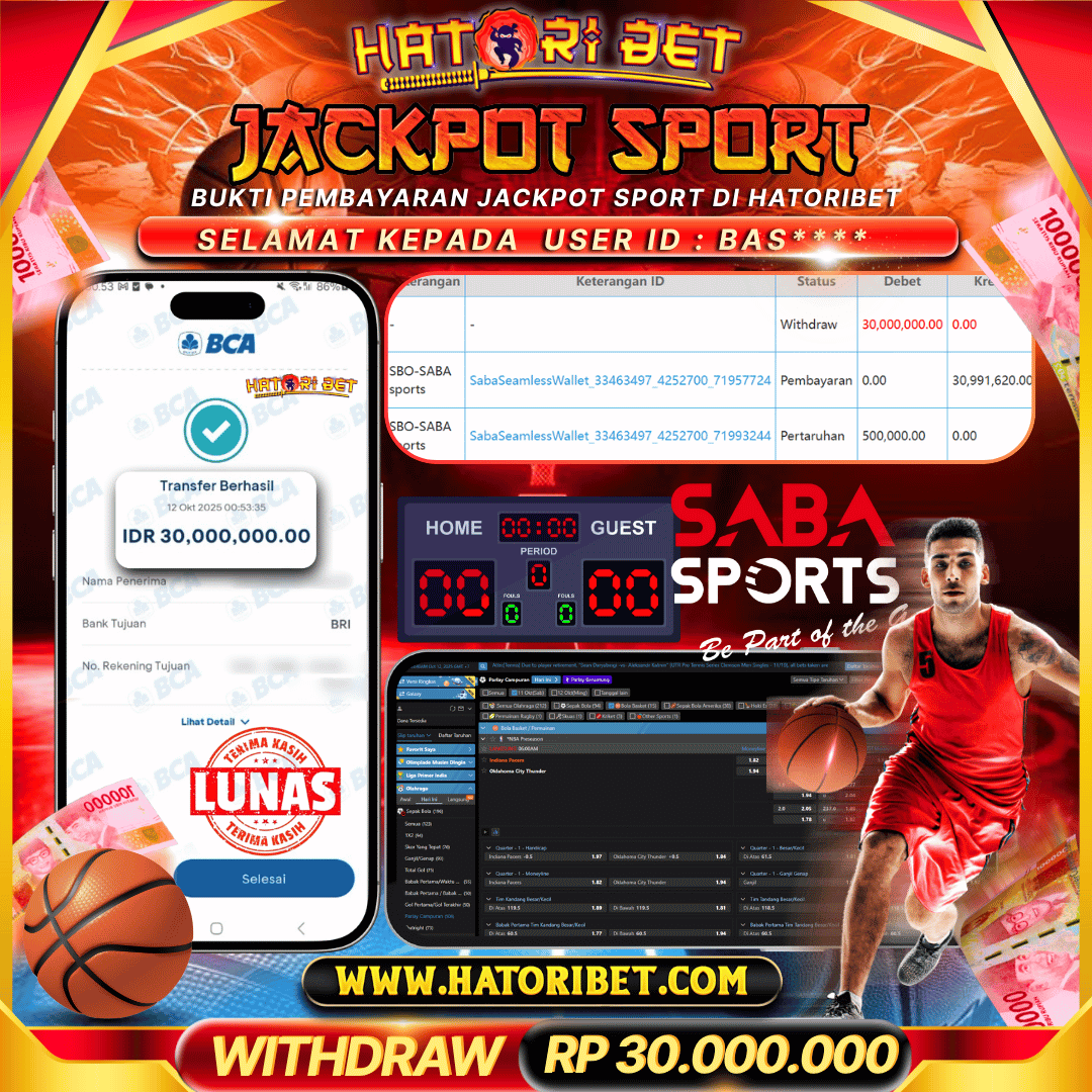 HATORIBET JACKPOT SPORT SABA RP 30,000,000 ,- LUNAS