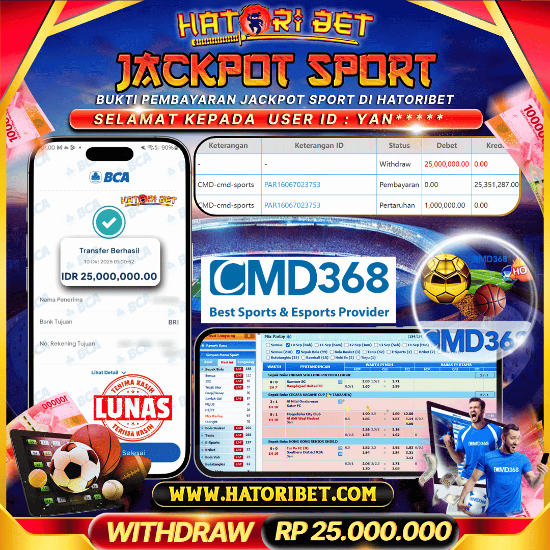 HATORIBET JACKPOT SPORT CMD368 RP 25,000,000 ,- LUNAS