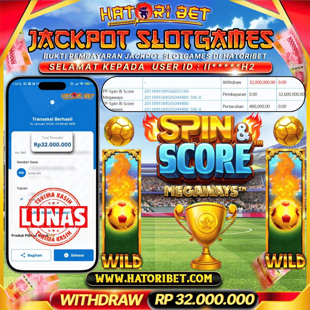 HATORIBET JACKPOT SLOTGAMES PP-SPIN&SCORE MEGAWAYS 32,000,000 ,- LUNAS