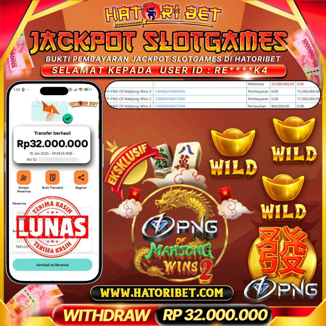 Selamat kepada UserId : RE****K4 telah berhasil mendapatkan kemenangan besar pada permainan SLOTGAMES PP- PNG OF MAHJONG WINS 2 sebesar RP 32,000,000 , Setelah mengisi formulir withdraw dalam kurung waktu hanya 5 – 10 menit pihak HatoriBet sudah melakukan transfer kepada pemilik UserId dan dana sudah dapat di cairkan oleh pemenang. Bukti pembayaran yang kami berikan merupakan bukti pembayaran yang SAH / VALID yang langsung di dapatkan melaui tanda transfer transaksi dari Bank yang di tuju. Kami mengucapakan banyak Terima Kasih Kepada pemenang karena sudah mempercayakan kami sebagai Bandar terpercaya yang membayar semua kemenangan member hingga lunas. Masih ragu dengan HatoriBet? Di mana bandar slot dan togel online sekarang yang terpercaya seperti hatoribet ? Bandar yang mengirimkan kemenangan member tanpa bertele – tele. Jadi.... tidak perlu khawatir pada situs HATORIBET karena kemenangan berapapun akan dibayarkan hingga lunas kepada pemenang