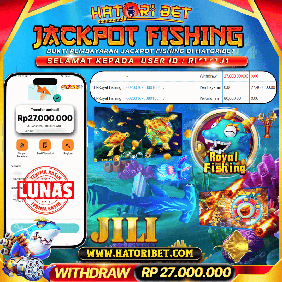 HATORIBET JACKPOT FISHING JILI-ROYAL FISHING RP 27,000,000 ,- LUNAS