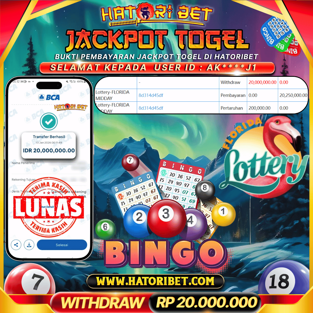 HATORIBET JACKPOT TOGEL FLORIDA RP 20,000,000 ,- LUNAS