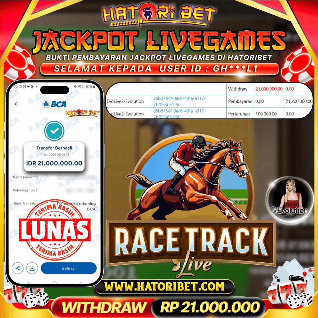 HATORIBET JACKPOT LIVEGAMES EVOLIVE2-EVOLUTION RP 21,000,000 ,- LUNAS