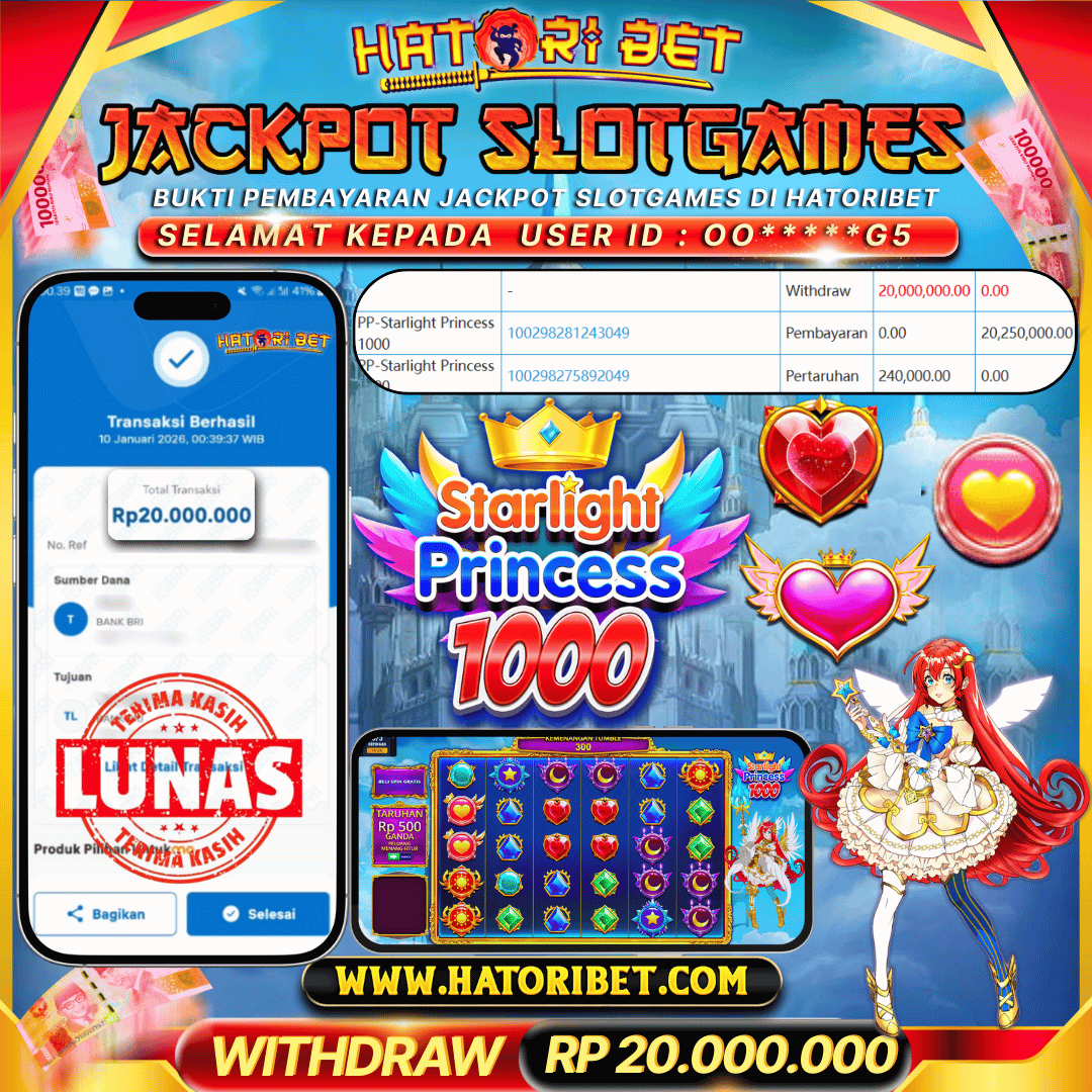 Selamat kepada UserId : OO*****G5 telah berhasil mendapatkan kemenangan besar pada permainan SLOTGAMES PP-STARLIGHT PRINCESS 1000 RP 20,000,000 , Setelah mengisi formulir withdraw dalam kurung waktu hanya 5 – 10 menit pihak HatoriBet sudah melakukan transfer kepada pemilik UserId dan dana sudah dapat di cairkan oleh pemenang. Bukti pembayaran yang kami berikan merupakan bukti pembayaran yang SAH / VALID yang langsung di dapatkan melaui tanda transfer transaksi dari Bank yang di tuju. Kami mengucapakan banyak Terima Kasih Kepada pemenang karena sudah mempercayakan kami sebagai Bandar terpercaya yang membayar semua kemenangan member hingga lunas. Masih ragu dengan HatoriBet? Di mana bandar slot dan togel online sekarang yang terpercaya seperti hatoribet ? Bandar yang mengirimkan kemenangan member tanpa bertele – tele. Jadi.... tidak perlu khawatir pada situs HATORIBET karena kemenangan berapapun akan dibayarkan hingga lunas