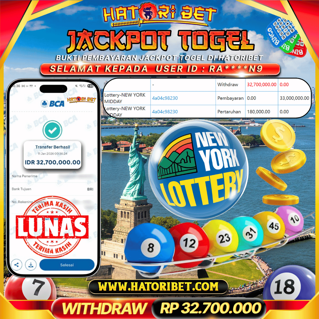 HATORIBET JACKPOT TOGEL NEW YORK RP 32,700,000 ,- LUNAS