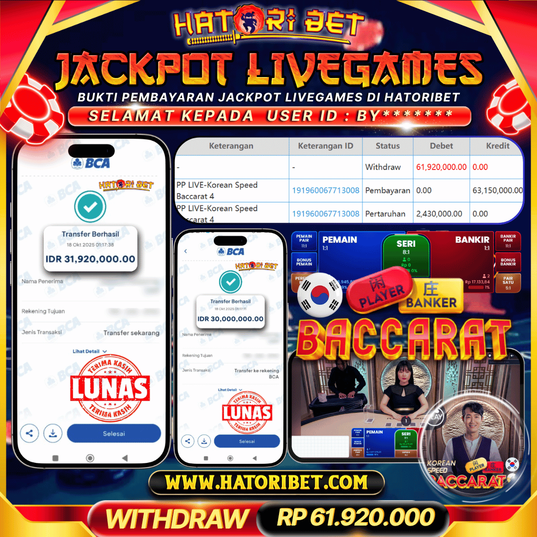 HATORIBET JACKPOT LIVEGAMES PP LIVE-KOREAN SPEED BACCARAT 4 RP 61,920,000 ,- LUNAS