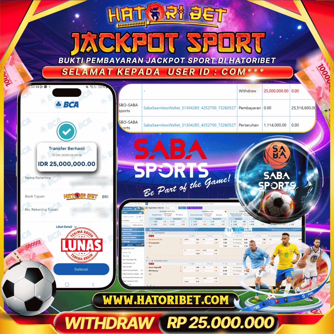 HATORIBET JACKPOT SPORT SABA RP 25,000,000 ,- LUNAS