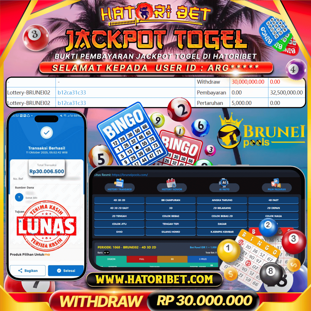 HATORIBET JACKPOT TOGEL BRUNEI RP 30,000,000 ,- LUNAS