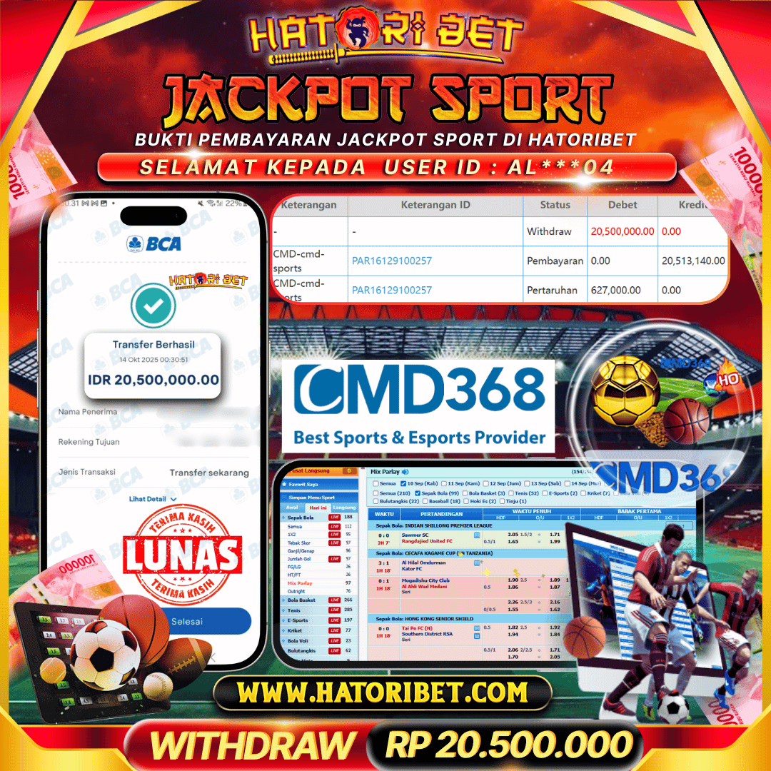 HATORIBET JACKPOT SPORT CMD368 RP 20,500,000 ,- LUNAS