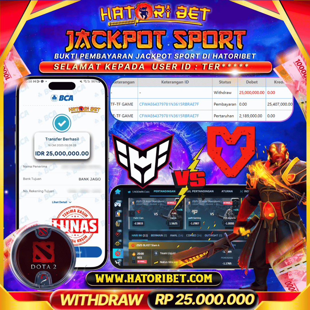 HATORIBET JACKPOT SPORT TF GAMING-DOTA 2 RP 25,000,000 ,- LUNAS